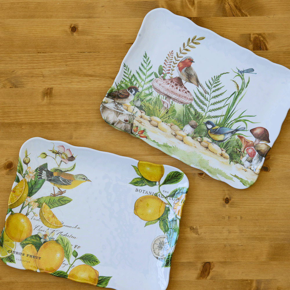 The tranquility of a woodland oasis bursts to life with lush flora and fauna in nature’s finest hues. The large size of the tray makes it ideal for serving a variety of treats, from cookies and pastries to fruits and cheeses. Featuring beautifully detailed artwork on dishwasher-safe melamine, this tray is sure to impress your guests.
